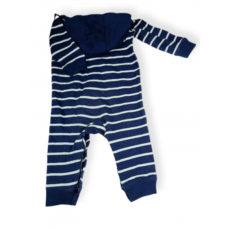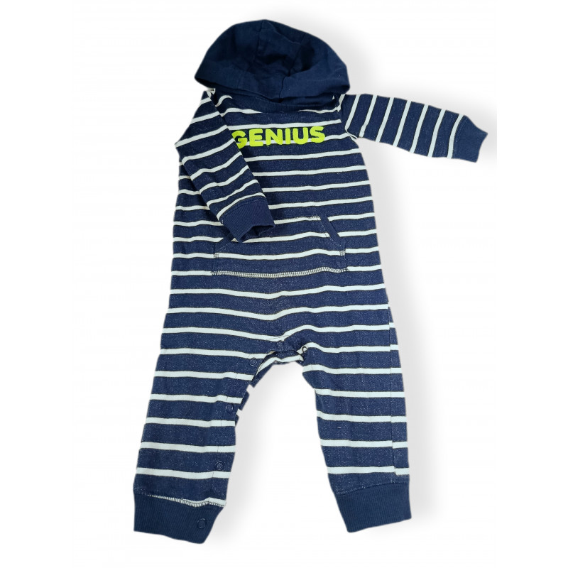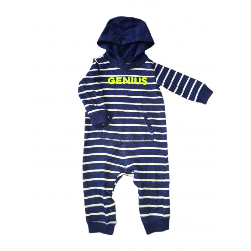 Комбинезон трикотажный GENIUS с капюшоном, в сине белую полоску. Застегивается на ножках